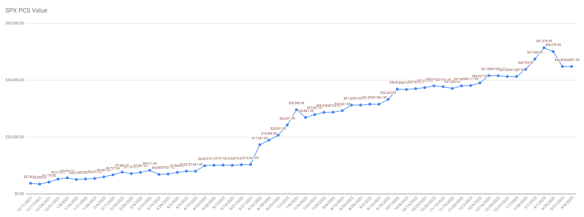 Our 6-year goal is to reach $175,000 account value to be eligible for portfolio margin (PM), and today we accomplished 43.96% of that goal.